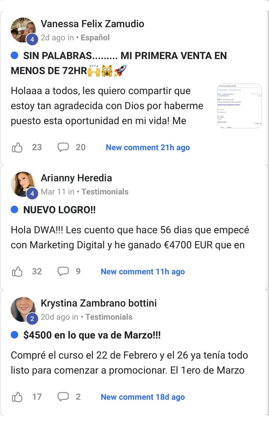 Es por eso que reuní una lista de reseñas y opiniones que obtuve de la comunidad (sí, la misma comunidad a la que te unirás cuando hagas la compra).