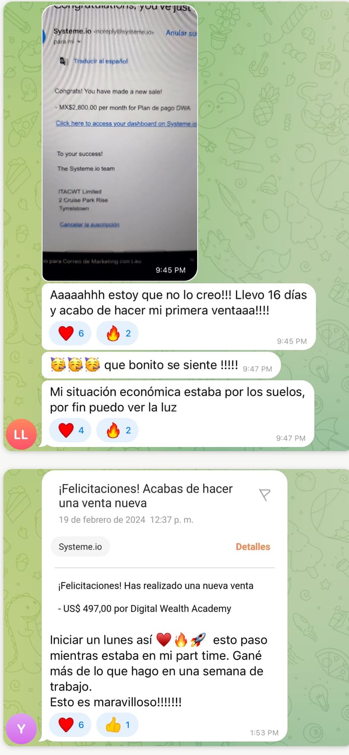 También tendrás acceso a mi grupo privado de Telegram donde tendrás mi asesoramiento y apoyo personal.